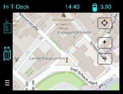 ℹ️ Nur Lilygo T-Lora Pager: Das Navigieren innerhalb der Kartenansicht ist mit den Tasten W, S, A, D möglich.